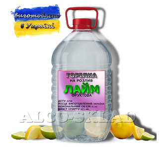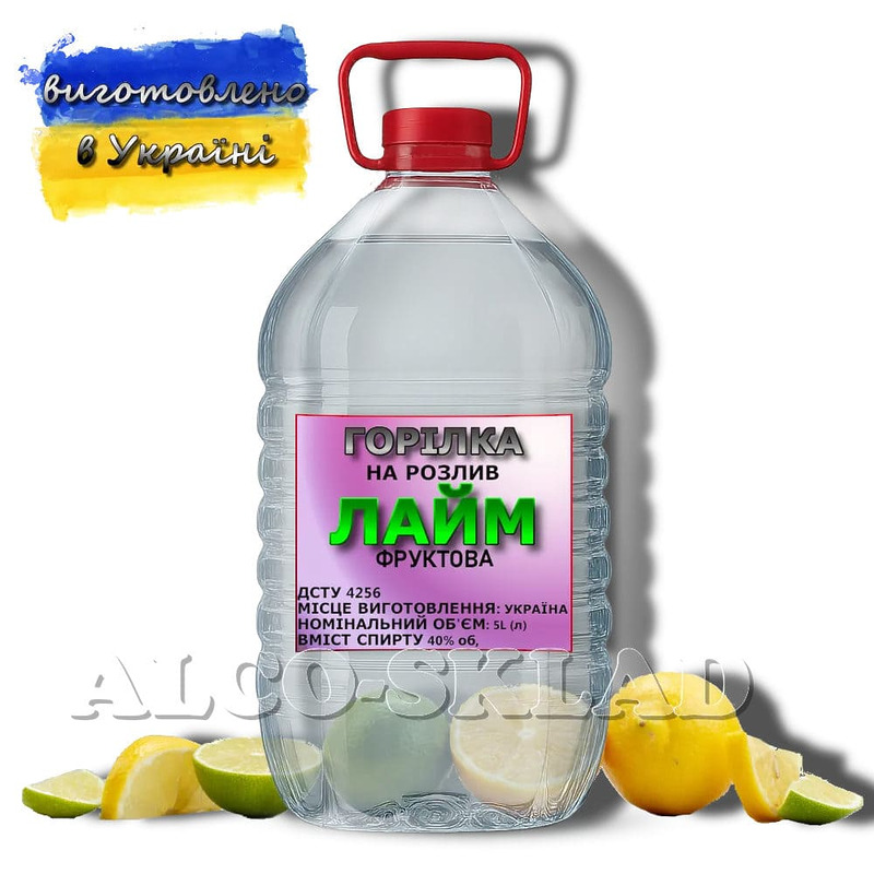 Фруктовая водка «Лайм» 40% в формате ПЭТ 5 л с пломбой первого вскрытия. Яркий цитрусовый аромат, сухой и освежающий вкус, чистое послевкусие. Производство — Украина, соответствует ДСТУ 4256:2021. Доставка Новой почтой по всей стране.